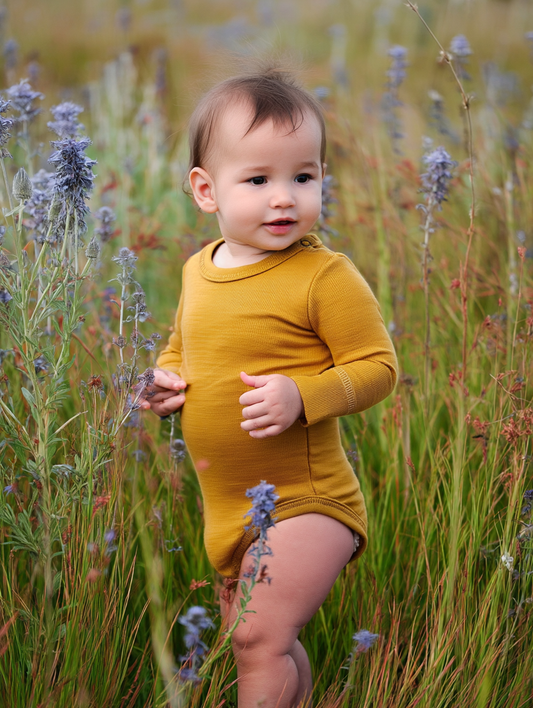 Wollen Romper lange mouw – Merinowol - Harvest Gold