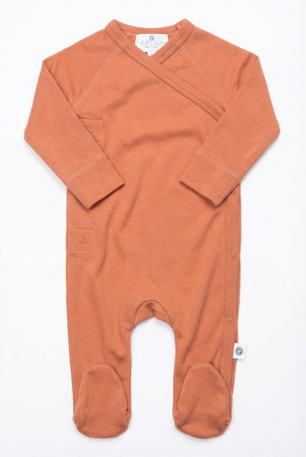 Baby-Strampler mit Füßen aus Merinowolle – Korallengold