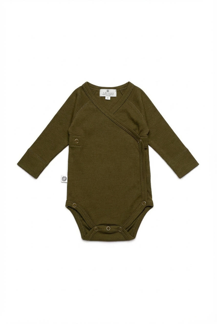 High quality merino wool, wonderfully soft. The wrap-over romper does not need to be worn over the baby's head. Extra...