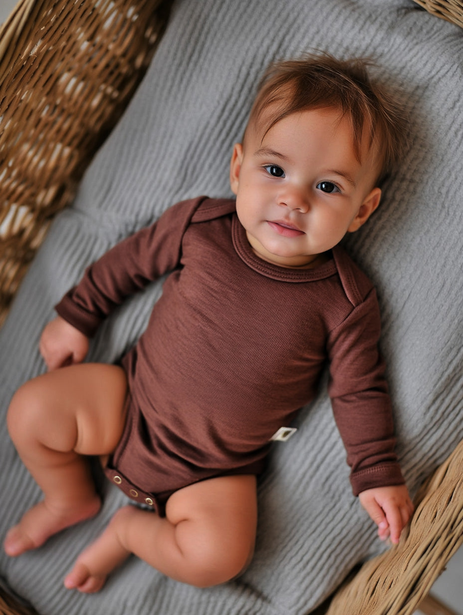 Long-sleeved wool romper - Merino wool - Cinnamon