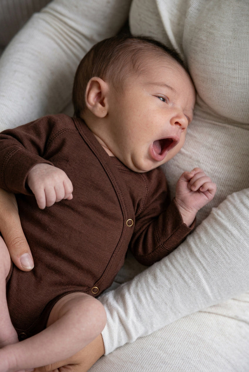 Grenouillère en laine à manches longues – Merinowol - Chocolate fondant