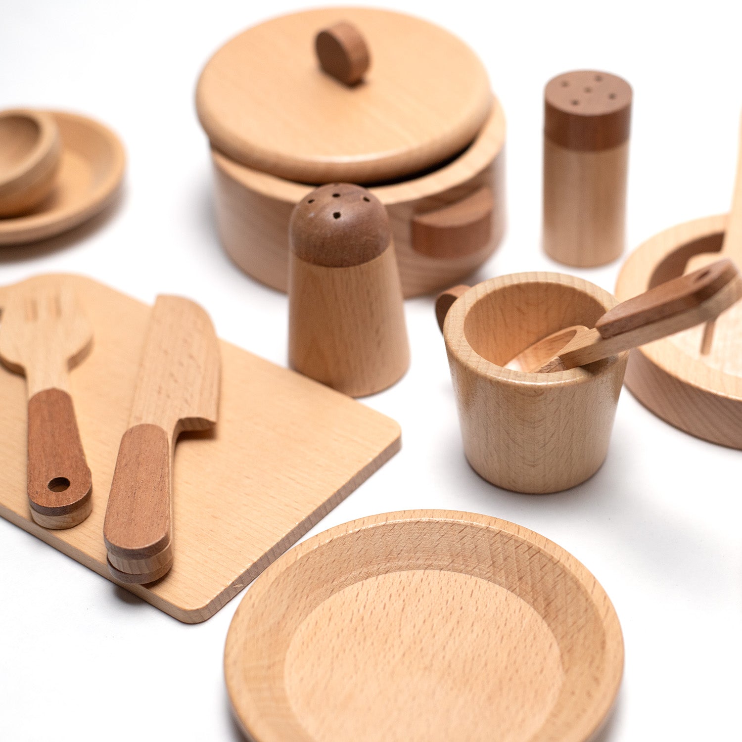 Mooi houten kooksetje Hout uit verantwoorde bron Gegarandeerd uren lang speelplezier Open einde, montessori speelgoed