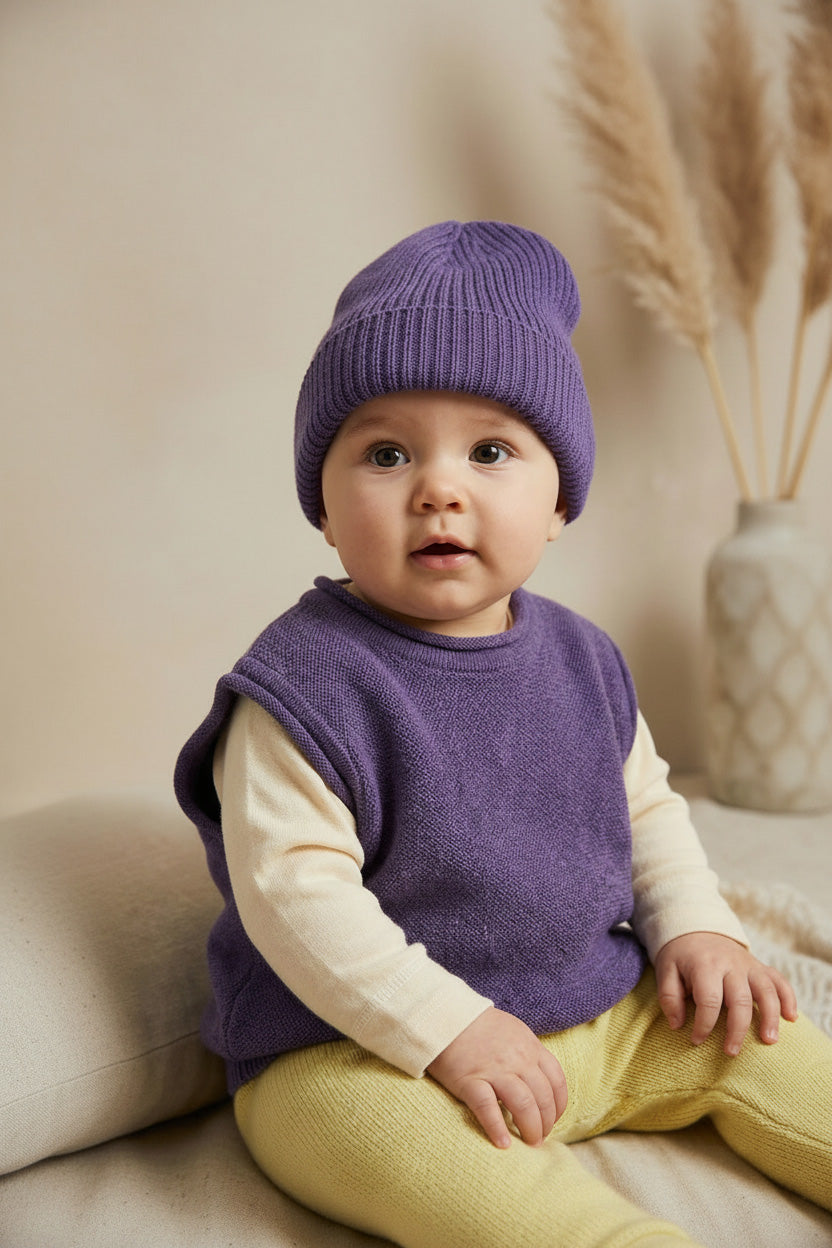 Baby muts van ultra fine merinowol. Gebreide warme chunky muts. Duurzaam en eerlijk gemaakt