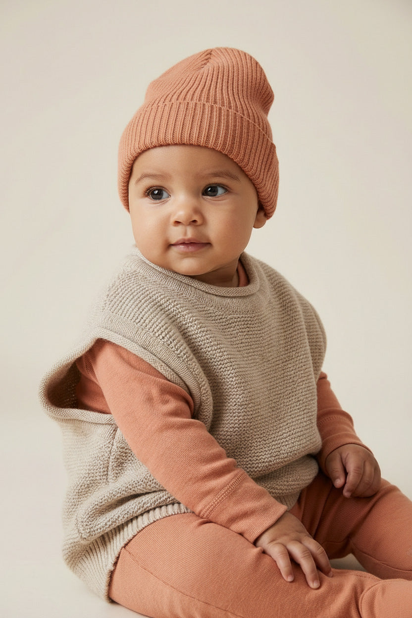 Baby muts van ultra fine merinowol. Gebreide warme chunky muts. Duurzaam en eerlijk gemaakt