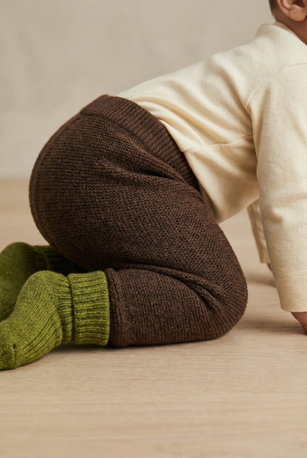 Merinowol gebreid baby broekje - Carob