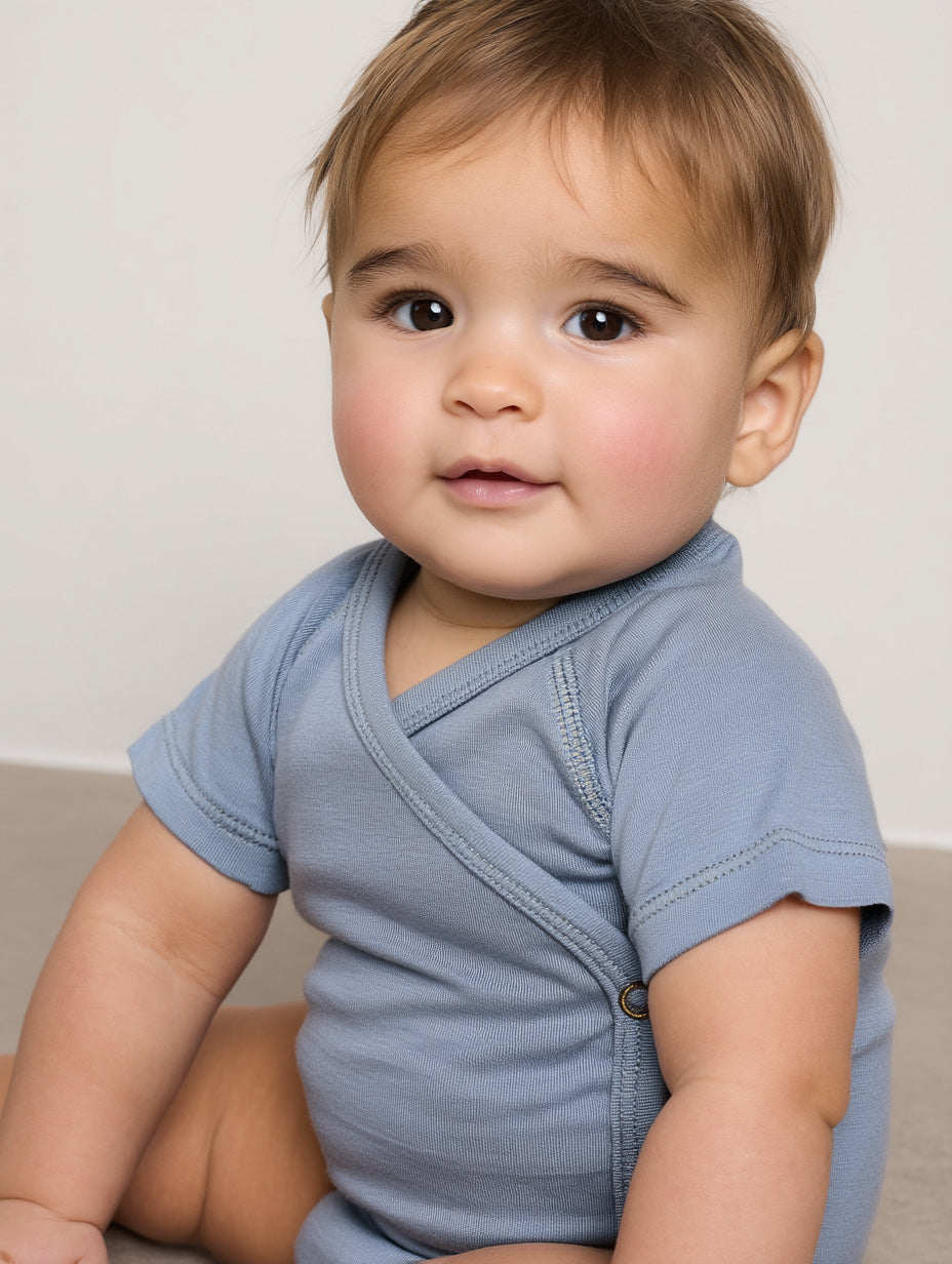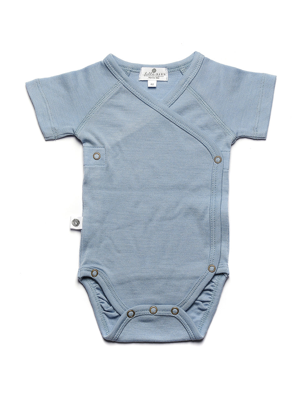 Wollen Overslagromper korte mouw – Merinowol - Blue Fog