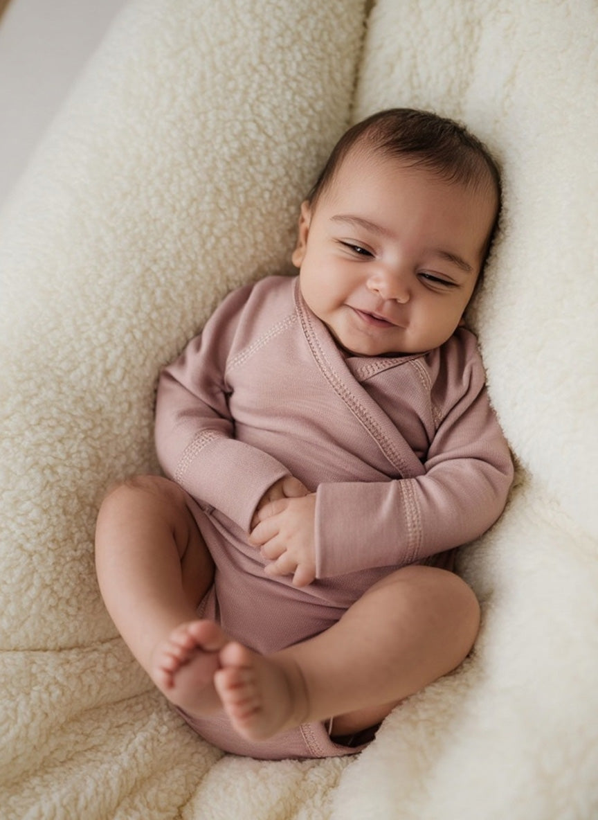 Wollen Overslagromper lange mouw – Merinowol - Misty Rose