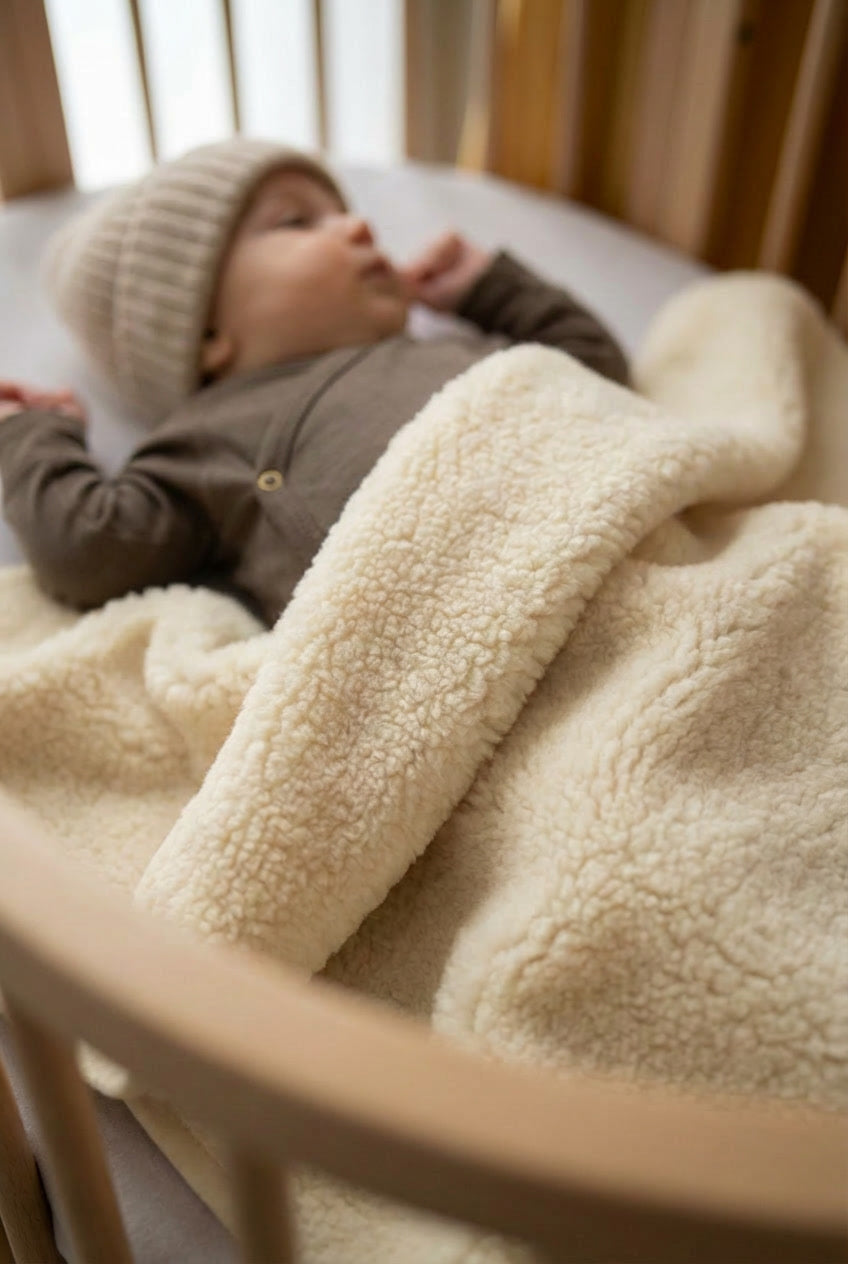 Heerlijk zacht en comfortabel wollen wiegdeken. Wiegdeken gemaakt van 100% natuurlijk en certificeerde wol. Merinowol reguleert de vochtbalans en temperatuur....